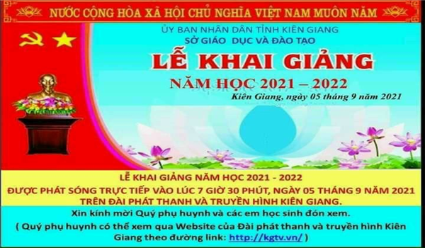 Lễ khai giảng năm học 2021 - 2022 Được phát sóng trực tiếp vào lúc 7 giờ 30 ngày 05 tháng 09 năm 2021 trên đài phát thanh và truyền hình Kiên Giang